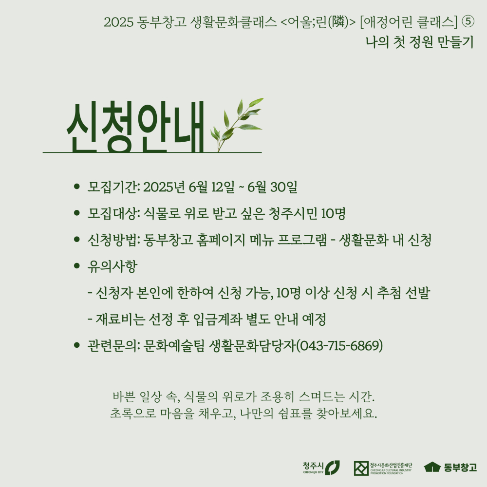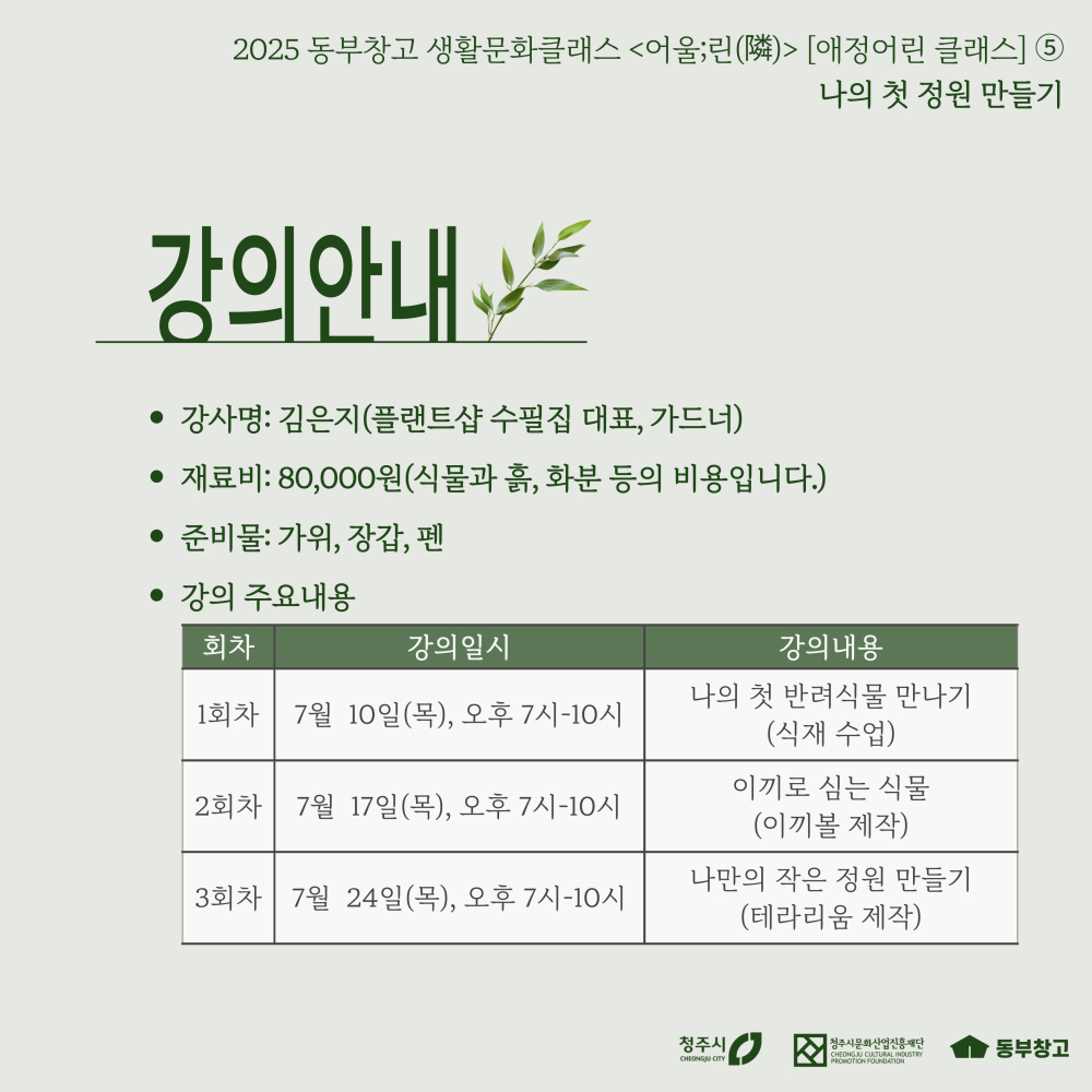 2025 생활문화클래스 <어울;린(隣)> [애정어린 클래스] ⑤ 나의 첫 정원만들기