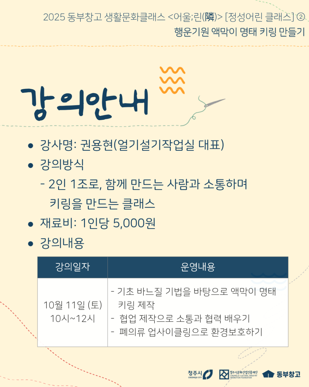 2025 생활문화클래스 <어울;린(隣)> [정성어린 클래스] ② 행운기원 액막이 명태 키링 만들기