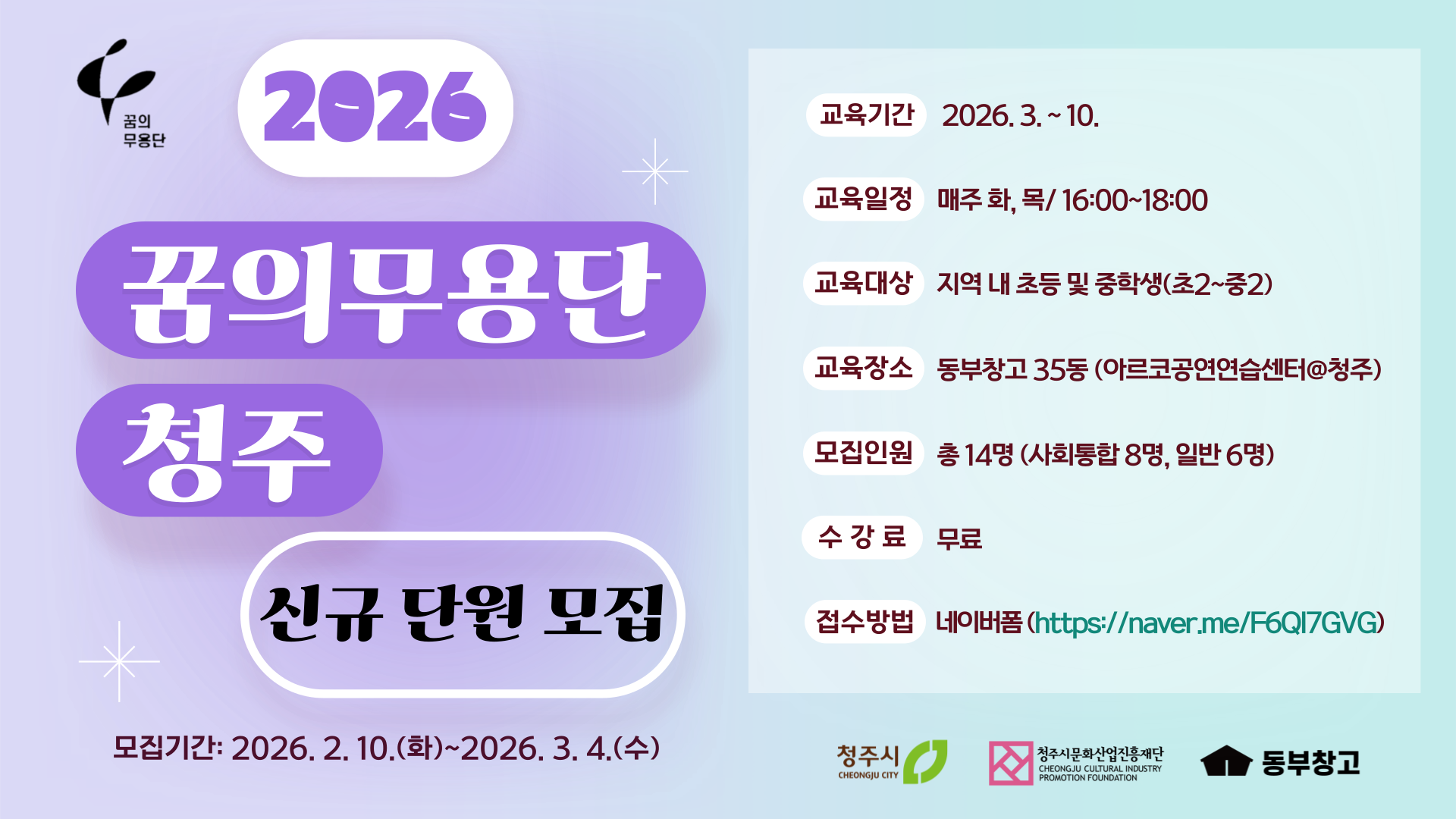 ㆍ 2026 꿈의 무용단 청주 신규 단원 모집