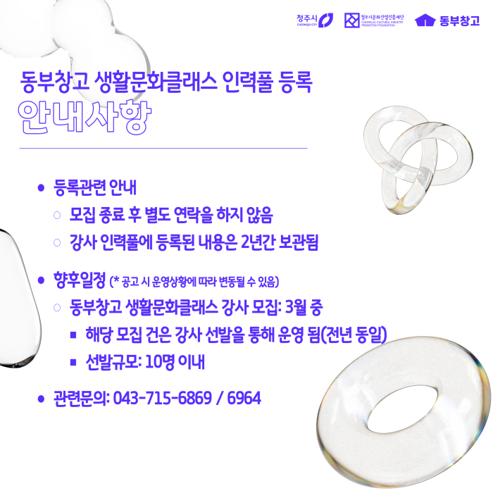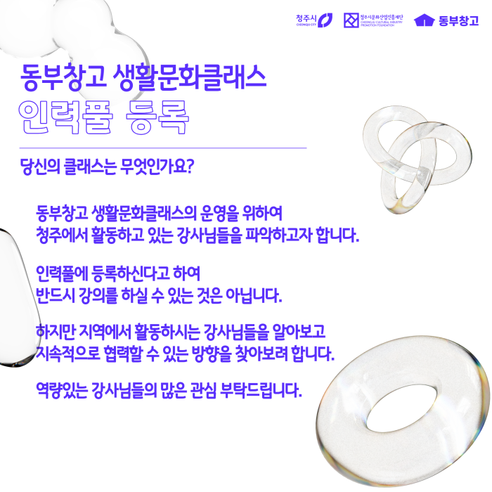 [공고번호 2026-0009] 2026년 동부창고 생활문화클래스 인력풀 등록 [당신의 클래스는 무엇인가요?]