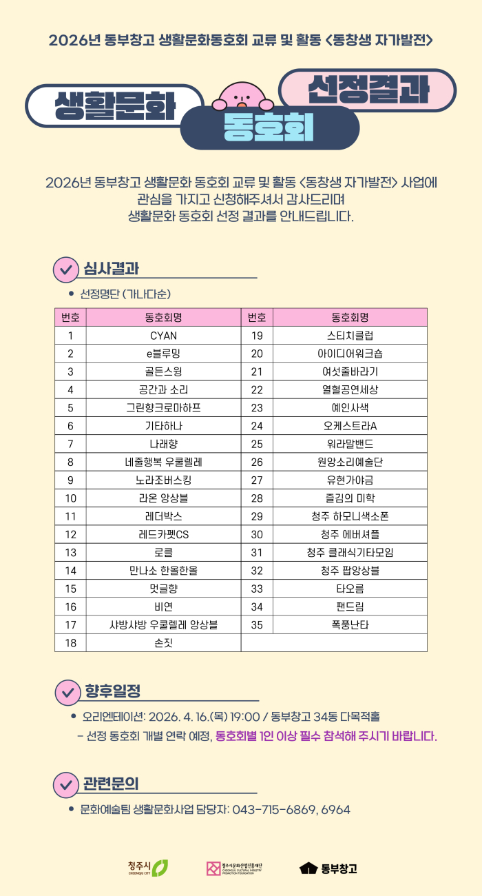 2026년 동부창고 생활문화동호회 교류 및 활동 <동창생 자가발전> 운영 동호회 선정 발표